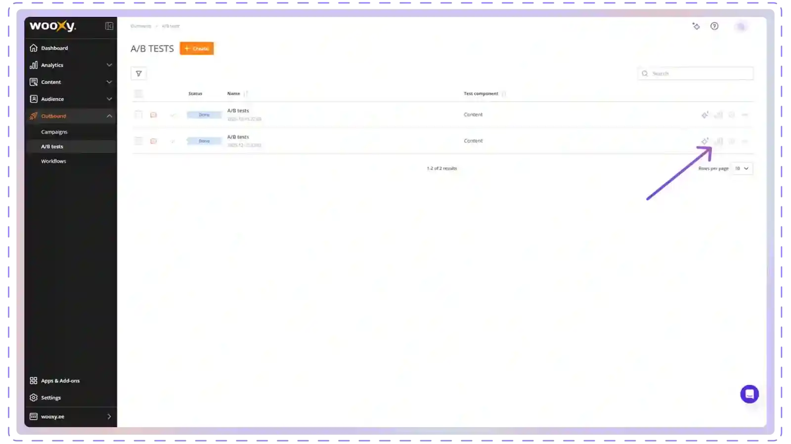 Click the "A/B tests" button.