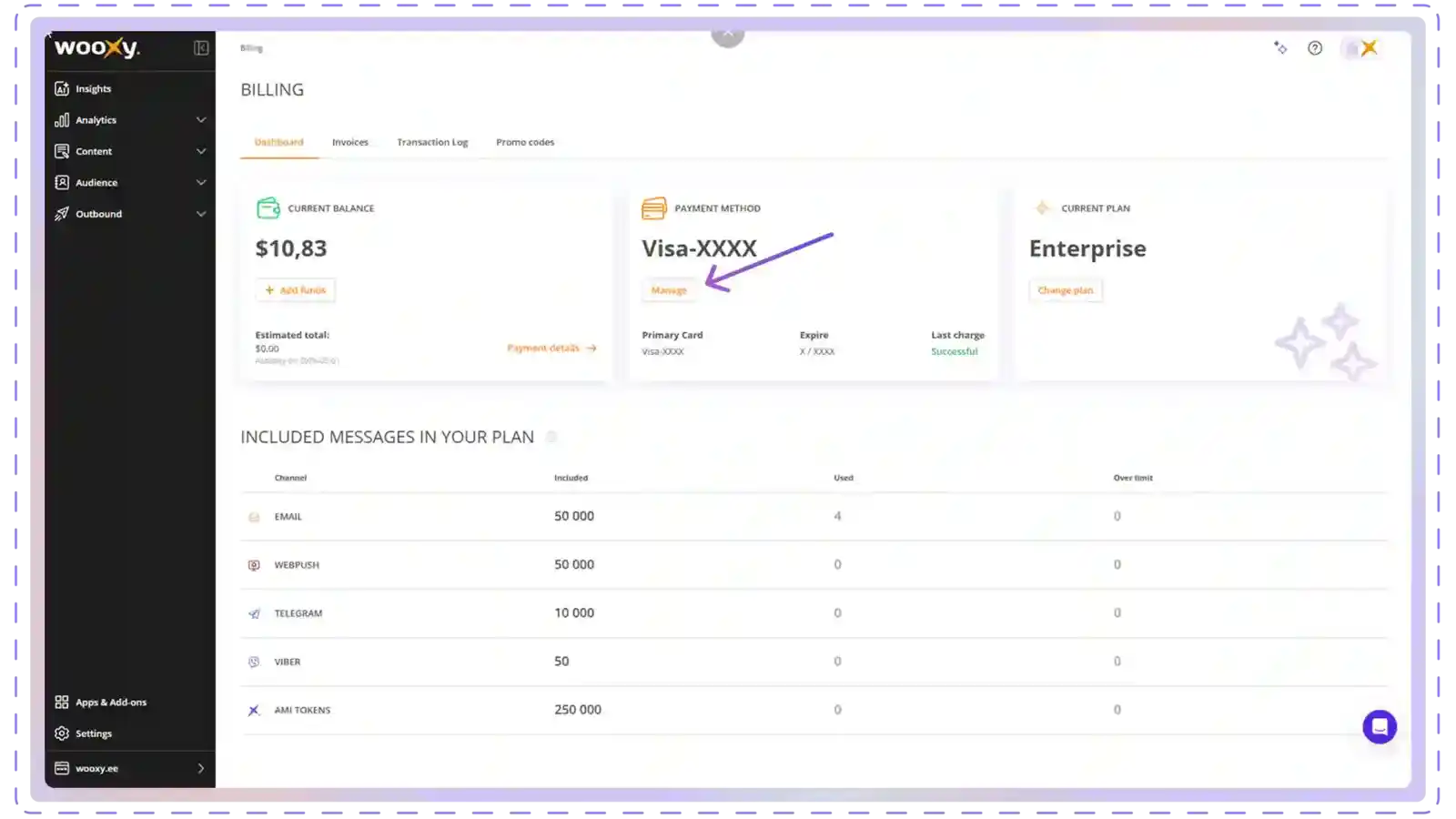 • Find the "Payment Method" block and click the "Manage" button.