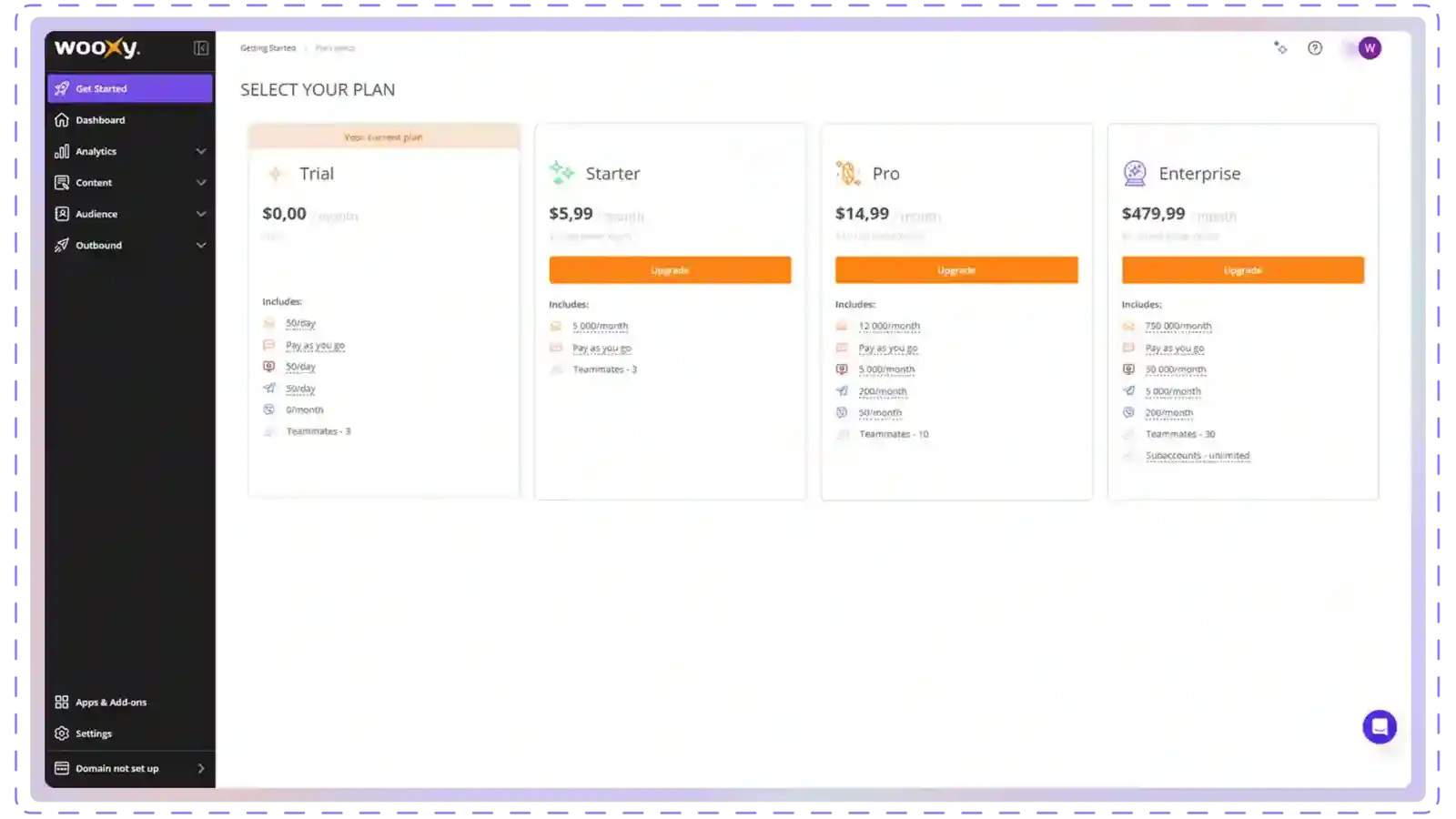 Select a plan during account setup