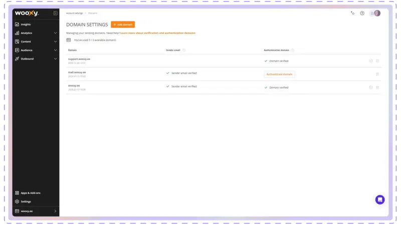- Important! We strongly recommend authenticating the sending domains by adding DNS records to maximize deliverability.