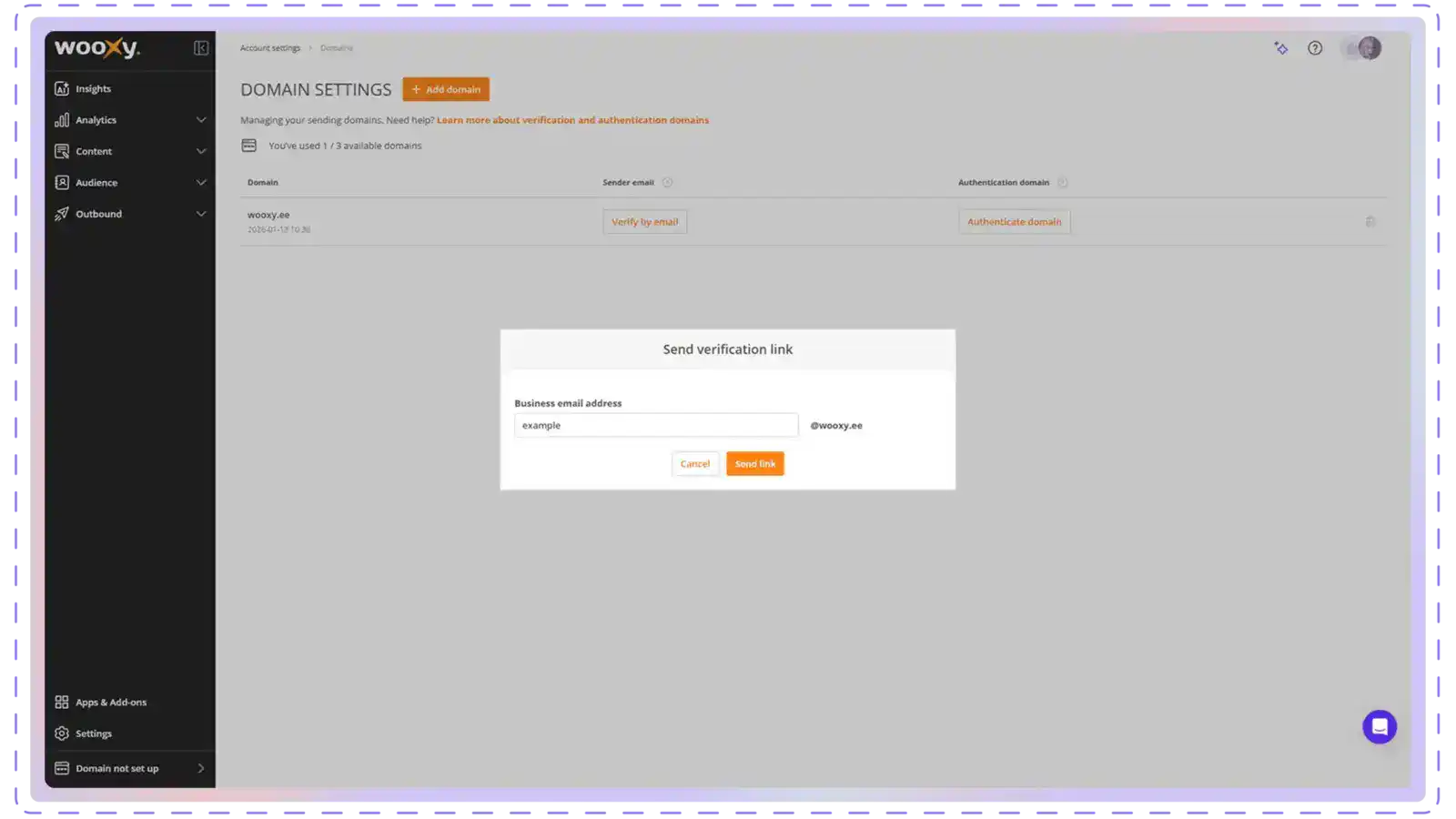 - Watch the video instructions; it may help verify the domain in the Wooxy system.