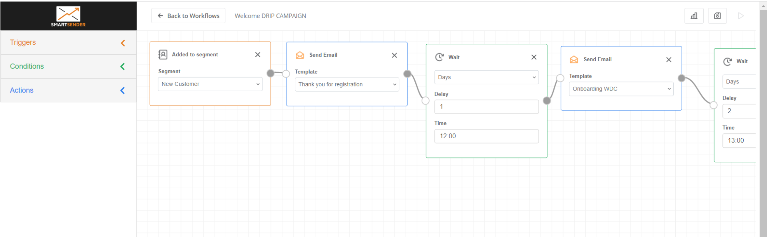A welcome drip campaign could onboard your new customers and keep them engaged after registration. It helps people get acquainted with your product and allows you to start working with your customer from the first day. Drip campaigns are also called trigger emails or lifecycle emails.