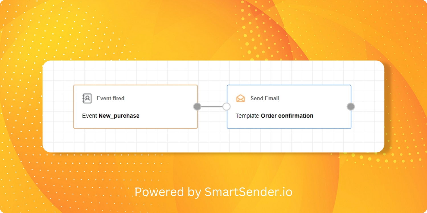 This workflow is intended to send automatic confirmation emails following a purchase. It consists of 2 blocks. The first block is the “Event fired” trigger. When the customer makes a purchase, the following trigger will be activated.