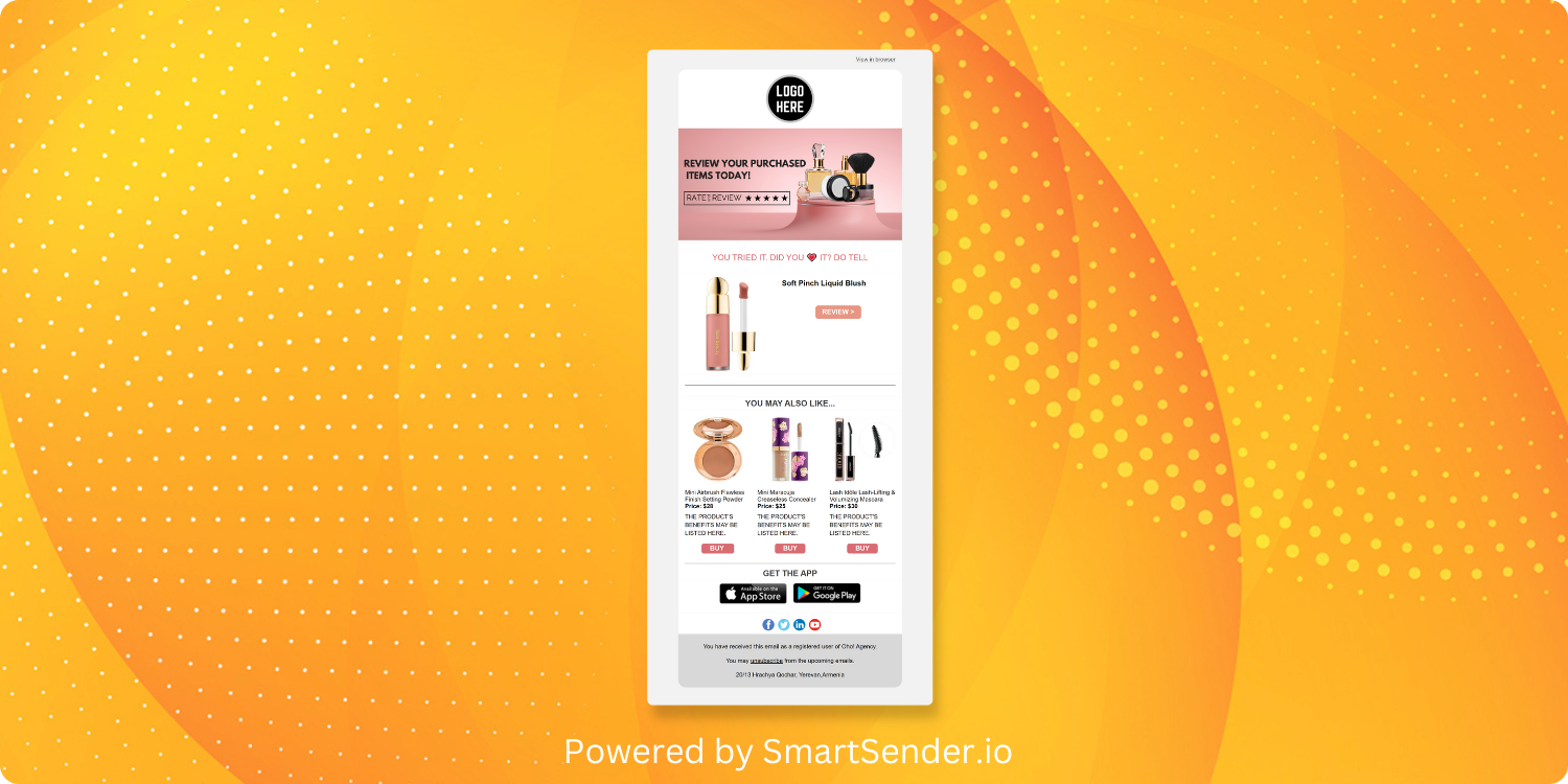 Then, the platform will wait 20 days and will send an email asking to write a review and will recommend other makeup items.