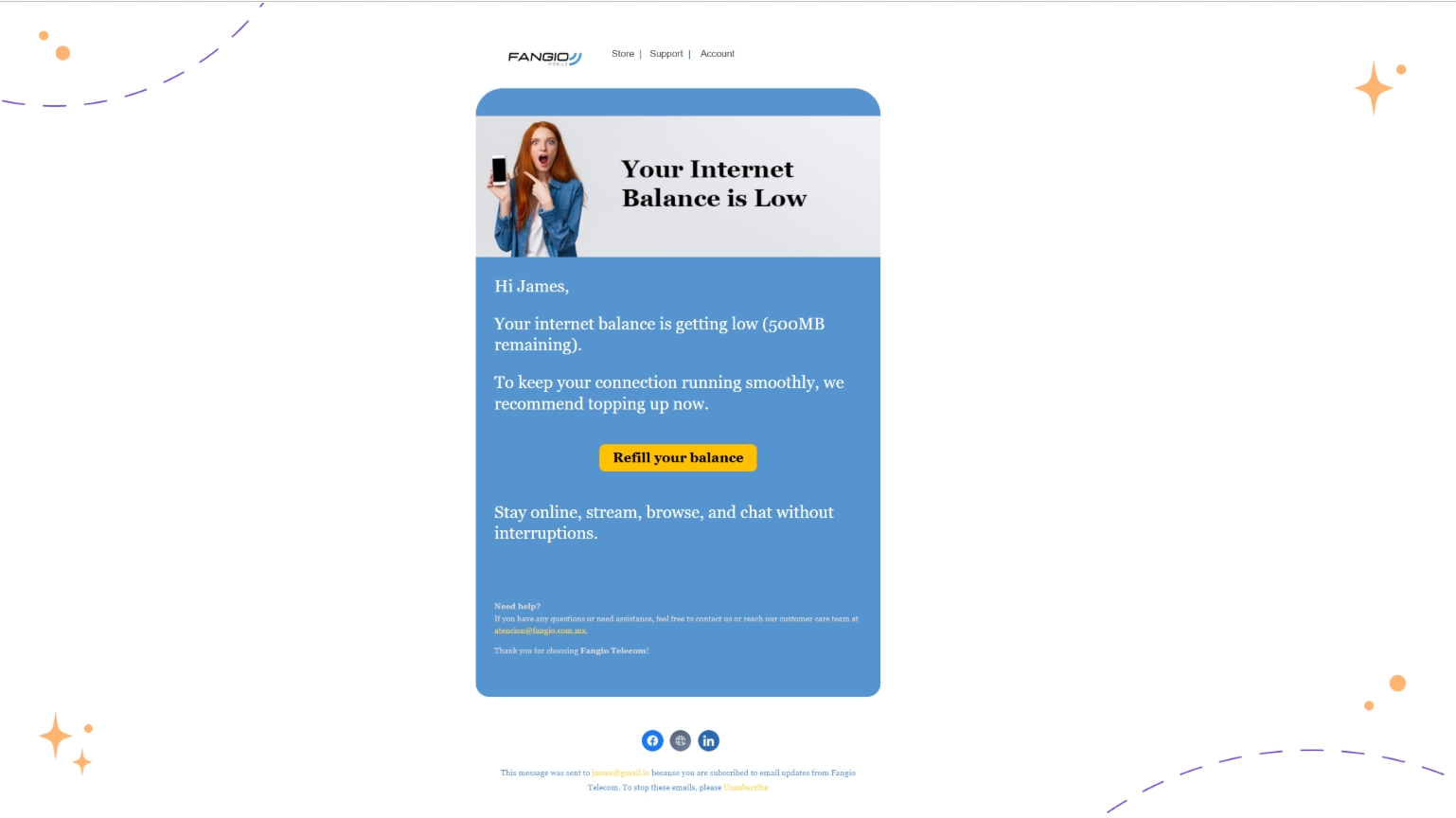Email - Personalized gigabyte balance expiration reminders