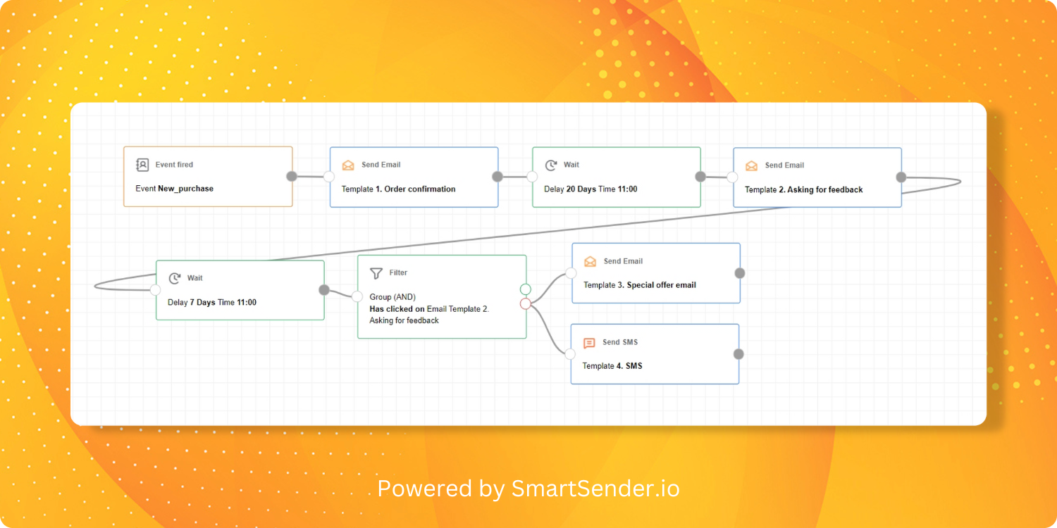 This workflow is designed for customers who have made a purchase. Choose this workflow to send a confirmation email to customers.